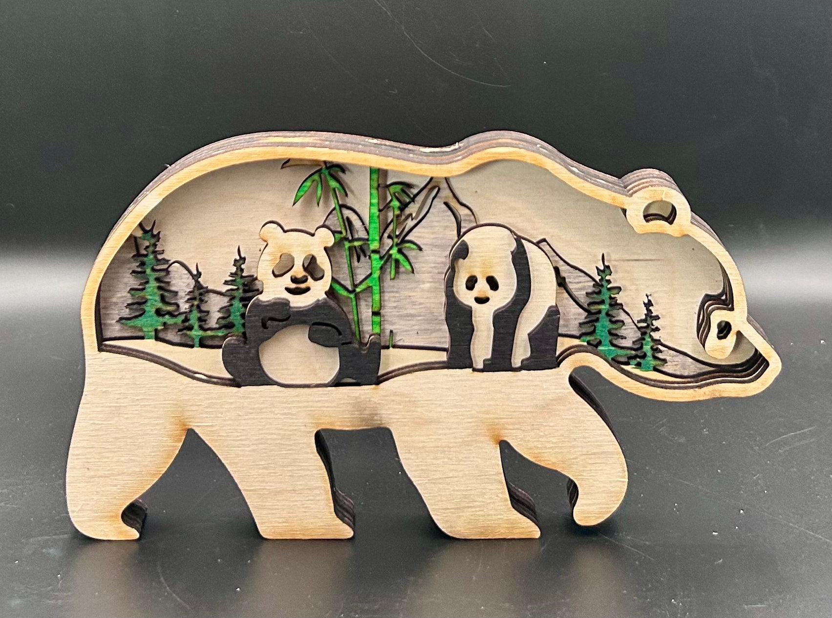 Panda en bois de Tilleul multicouches, peint.